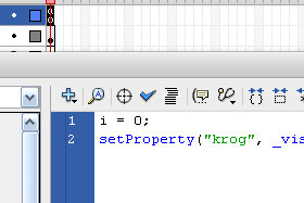 i = 0; setProperty("krog", _visible, false); Potem lahko zaprete okno Actions. |