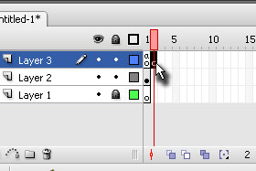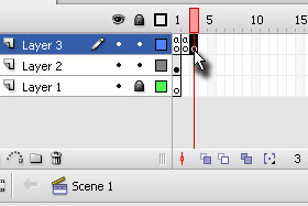Sedaj pa v Layer-ju 2 označite Frame 3 (glej sliko).