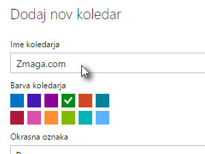 ![]() V novem oknu vpišite poljubno ime novega koledarja. |