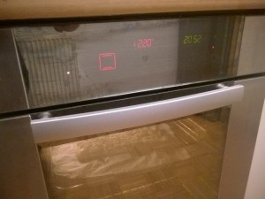 Postavite pripravljeno pecivo na pekač in ga postavite v pečico z nastavljeno temperaturo 220 stopinj Celzija. |