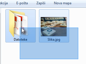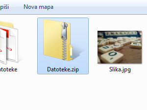 ![]() V neko poljubni mapi označite datoteke in mape, ki bi jih radi arhivirali. Označujete lahko z miško vse skupaj, lahko označujete posebej med tem, ko držite tipko Ctrl itd... Arhiviranje v Windows okolju podpira najbolj razširjen ZIP format.