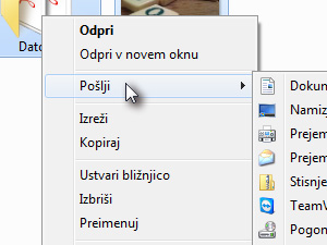 ![]() Nato na označeno kliknite z desnim miškinim gumbom, se postavite na Pošlji ... |