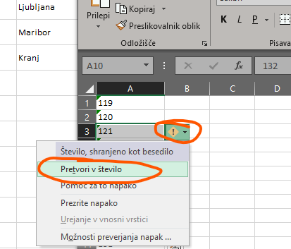 Če vam funkcija ne deluje, morate najprej celico pretvoriti v številko.