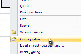 Kliknite na označene celice z desnim miškinim gumbom in izberite Oblikuj celice ...