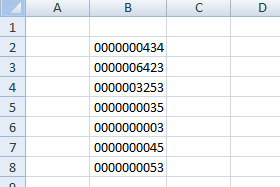 Vse prej označene celice imajo sedaj toliko številk, kolikor ste prej dodali ničel.