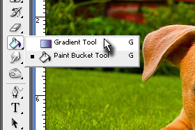 Držite z miško na orodju Paint Bucket Tool (bližnjica je tipka G), če tega orodja ne vidite. |
