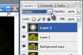 Določite layerju z prelivom barv senčenje na Multiply (glej sliko).
