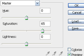 Potem pa Saturation določite 65 in kliknite na gumb OK. Seveda lahko določite tudi svoje vrednosti, saj ima vsaka fotografija drugačen končni rezultat. |