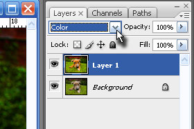 Določite dupliciranemu layerju senčenje na Color (glej sliko).