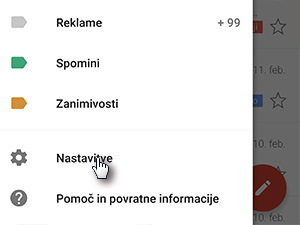 ![]() Prikazale se vam bodo nastavitve za poštni odjemalec in računi za sihroniziranje, kjer tapnete na Splošne nastavitve. |