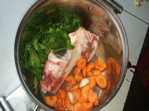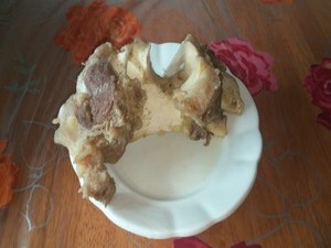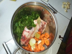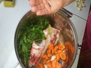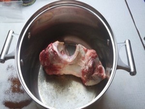 V srednje veliko lonec damo govejo kost za kuhanje. |