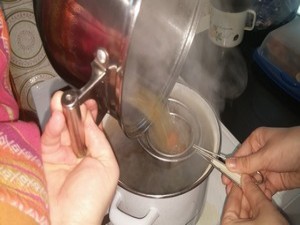 Po dveh urah kuhanja, juho precedimo, da dobimo čisto juho pripravljeno za postrežbo. |