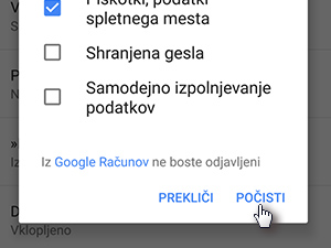 ![]() ... in potrdite brisanje s klikom na gumb Počisti. |