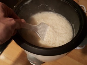 Riž potem pustite nekaj minut pri miru. V mojem primeru mi lahko v posodi ostane ogrevan do sedem ur. Jaz sem ga vzel po 20 minutah ven in je bil odličen. |