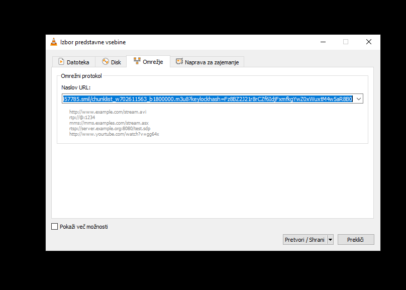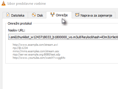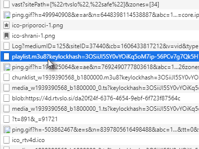 ![]() Dobro je vedeti, da HLS format običajno vsebuje več različnih kvalitet za predvajanje, ki se lahko med samim predvajanjem spremenijo. Če želite točno določeno kvaliteto, potem lahko v seznamu poiščente povezavo, ki se začne s chunklist_ in ima končnico .m3u8. To je povezava do kvalitete, ki se trenutno predvaja. V povezavi je tudi b_številka, ki določa kvaliteto videa. Višja je številka, boljša je kvaliteta. Če želite predvajati samo izbrano kvaliteto, potem skopirajte to povezavo. |