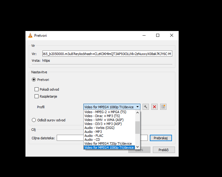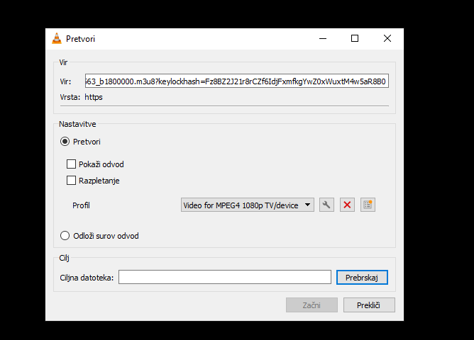 Po zgornjih navodilih uspešno prišel do HTTP URL-ja, ki ga VLC odpre če uporabim Media --> Open Network Stream Kako lahko to zadevo shranim na lokalni disk? Če grem preko Save/Convert nekako ne uspe... Ali pa če obstaja še kakšna druga metoda? Thnx! |