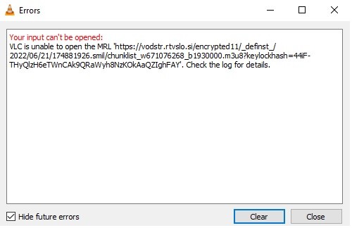 https://365.rtvslo.si/arhiv/tuji-filmi/1.... Playlist je ta: https://vodstr.rtvslo.si/encrypted11/_de.... Chunklist pa ta: https://vodstr.rtvslo.si/encrypted11/_de.... VLC pa naleti na Error, Your input can't be opened: VLC is unable to open the MRL foto v povezavi. Pravzaprav mi mo nekajletni prekinitvi tega početja, ne uspe prenesti nobenega videa s RTV. Kakšna težava v nastavitvi VLC? BR, A. ![]() |