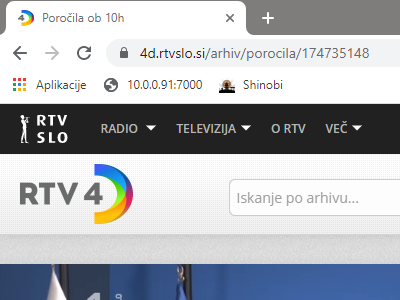 ![]() V spletnem brskalniku odprite poljubno vsebino. Sam sem izbral oddajo Poročila ob 10h., ki se nahaja na naslovu:https://4d.rtvslo.si/arhiv/porocila/174735148 Če se pričnejo predvajati reklame, potem osvežite stran, tako da se bo stran odprla brez reklamnega videa. |
