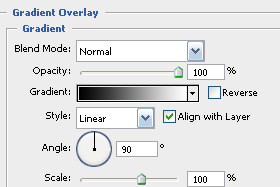 Blend Mode nastavite Normal, Opacity 100 %. Style določite Linear, Angle 90 stopinj in Scale 100 %. Kliknite na gumb OK. |