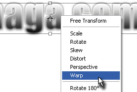 Sedaj pa pritisnite tipki CTRL + T, potem z desnim miškinim gumbom kliknite na označen napis ter izberite Warp.
