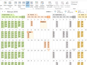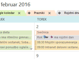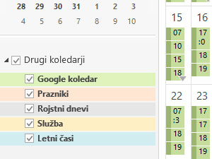 ![]() Odprite koledar v Outlooku. Jaz uporabljam več različnih koledarjev, kateri so sihronizirani z Google koledarjem.