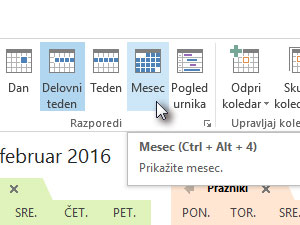 ![]() Najprej prikažite mesečni pogled tako, da kliknete na ikoni Mesec. |