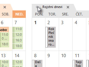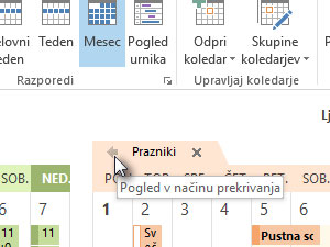 ![]() Postavite se na nek prikaz koledarja in kliknite na ikono z malo puščico za Pogled v načinu prekrivanja. |