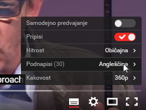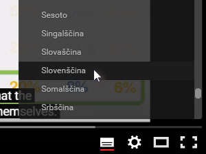 ![]() V posnetku boste verjetno opazili ikono Podnapisi, katero tudi kliknite. Potrebno je vedeti, da vsi posnetki nimajo te možnosti. V primeru, da ikone ne vidite, odprite drugega. |