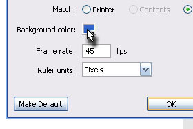 Background color določitepoljubno barvo in Frame rate 45 fps.