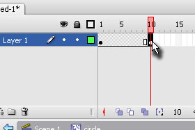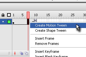 Kliknite z desnim miškinim gumbom nekje med Frame 1 in 10 ter izberite Create Motion Tween.