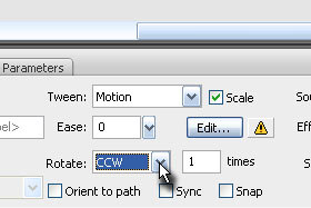 Sedaj pa spodaj v oknu Properties določite Tween na Motion in Rotate na CCW.