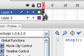 Kliknite na Frame 1, pritisnite tipko F9 in vnesite naslednjo kodo: