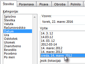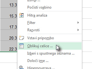 ![]() Kliknite na označene celice z desnim miškinim gumbom in izberite Oblikuj celice ... |
