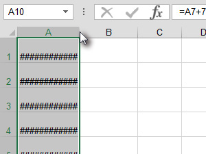 ![]() Če se vam datum prikaže v obliki ############, dvokliknite na polje med stolpcem A in B (glej sliko). |
