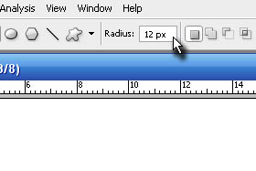 Zgoraj v orodni vrstici določite Radius 12 px. |