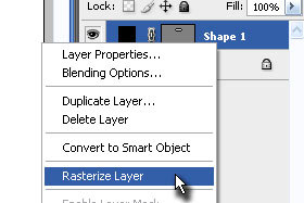 V paleti layerjev kliknite z desnim miškinim gumbom na Shape layer in izberite Rasterize Layer.
