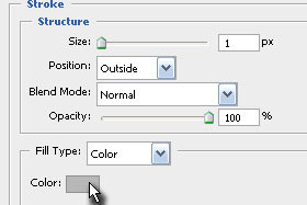 Size določite 1 px in kliknite na kvadratek za določanje barve (Color; glej sliko). V polje # vnesite b7b7b7 in potrdite na gumb OK. Potem pa kliknite na gumb OK, da potrdite nastavitve in zaprete okno . |