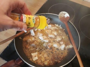 Ko se bo piščanec zapekel, dodajte še začimbe. Jaz sem dodal eko vegeto.