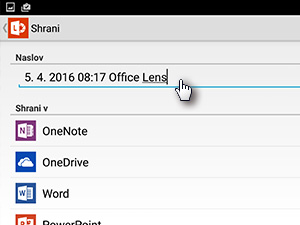 ![]() Odprite aplikacijo Office Lens. Uporabniki Android telefonov jo najdete na tem naslovu. |
