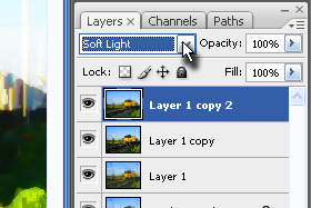 temu layerju določite senčenje na Soft Light (glej sliko).