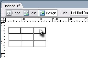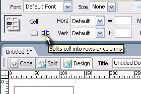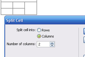 V oknu Properties kliknite sedaj na ikono Splits cell into rows or columns.