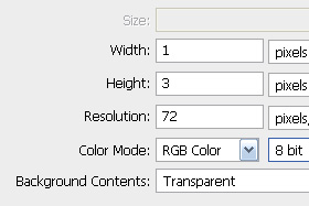 V oknu za ustvarjanje dokumenta določite Width 1, Height 3 in Background Contents nastavite Transparent.