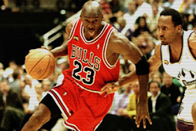 Jaz sem odprl fotografjo Michael Jordan-a, ki je bil moj idol v košarkaških letih. |