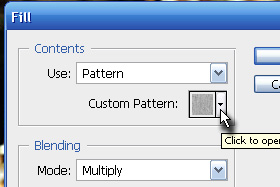 Odpre se novo okno. Use preko izbirnika določite Pattern in potem kliknite na puščico nazvdol pri okencu Custom Pattern (glej sliko). |
