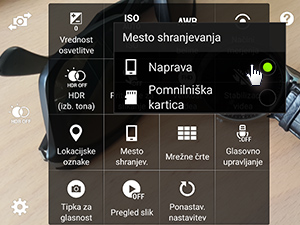|  Sedaj pa tapnite na ikono Mesto shranjevanja. V tem meniju lahko vklopite marsikaj, recimo uporabne mrežne črte in lokacijske oznake. | |||||
