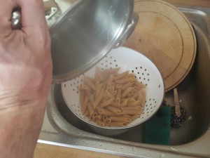 Ko se bodo testeninte skuhale, jih najprej odcedite. Čas kuhanja je vedno prikazan na embalaži testenin. |