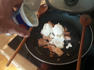 Ter nato kislo smetano. Jaz sem dodal skoraj cel lonček.