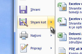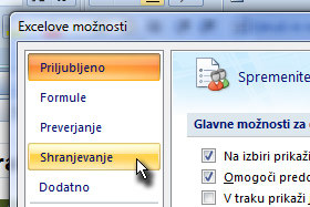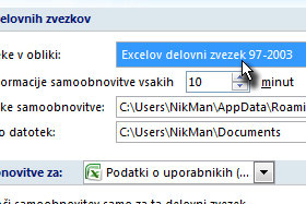 Podobne nastavitve veljajo tudi za ostale Office programe. Če bi radi ponovno nastavili privzeto, 2007 različico shranjevanja,m izberite Excelov delovni zvezek. |