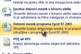 ...in izberite Delovni zvezek programa Excel 97-2003.