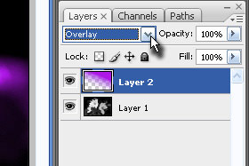 Sedaj novemu layerju določite senčenje na Overlay (glej sliko).